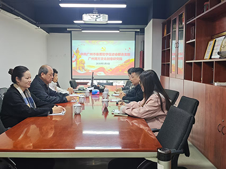 为深入推进社会组织“两个覆盖”工作,加强社会组织之间互学互鉴与共建共享,2026年1月5日,中共广州市奋勇助学促进会联合支部委员会(以下简称“联合党支部”)在支部书记汤淙源、副书记赵雪芬带领下,赴广州南方文化创意研究院(以下简称“研究院”)开展走访交流活动。研究院执行院长周少君及相关负责同志热情接待并参与交流。